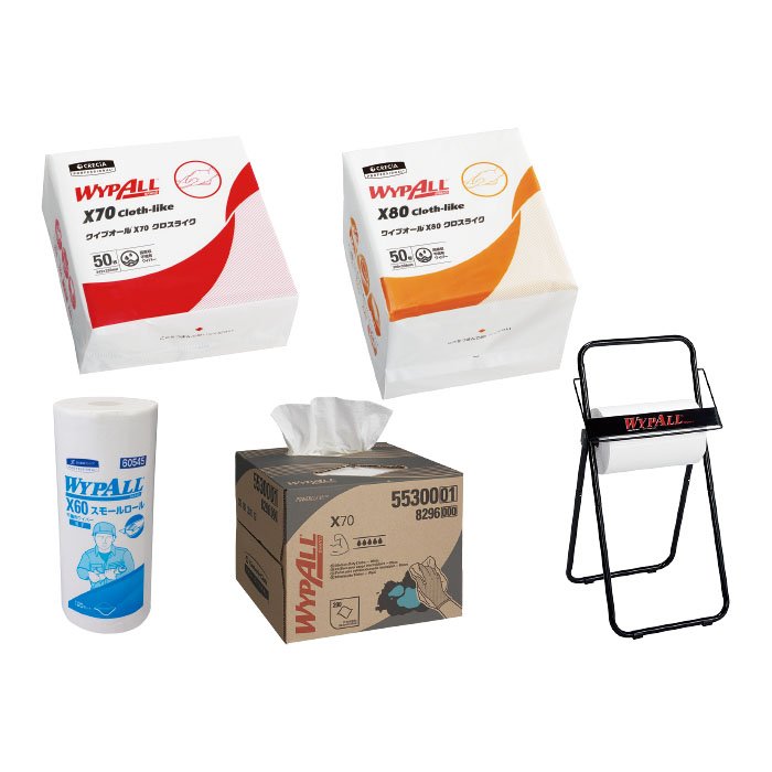③業務用製品:産業用ワイパー(紙ワイパー・不織布ワイパー・クリーンエリアワイパー)・身体保護製品(ワークウェア・グローブ・マスク・保護めがね)・オイル吸着マット・フェイシャルティシュー・トイレットロール・ペーパーハンドタオル・ハンドソープ・ウェットタオル・フードサービス製品