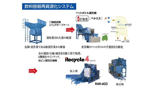 ベルトコンベヤの「搬送」技術、飲料容器再資源化システムの「選別」技術、アスファルトプラントの「加熱・乾燥」技術、コンクリートプラントの「混錬」技術、他「破砕・粉砕・篩」技術、「制御」技術の組合せで、「運ぶ+α」で新たな可能性を提供していきます。
